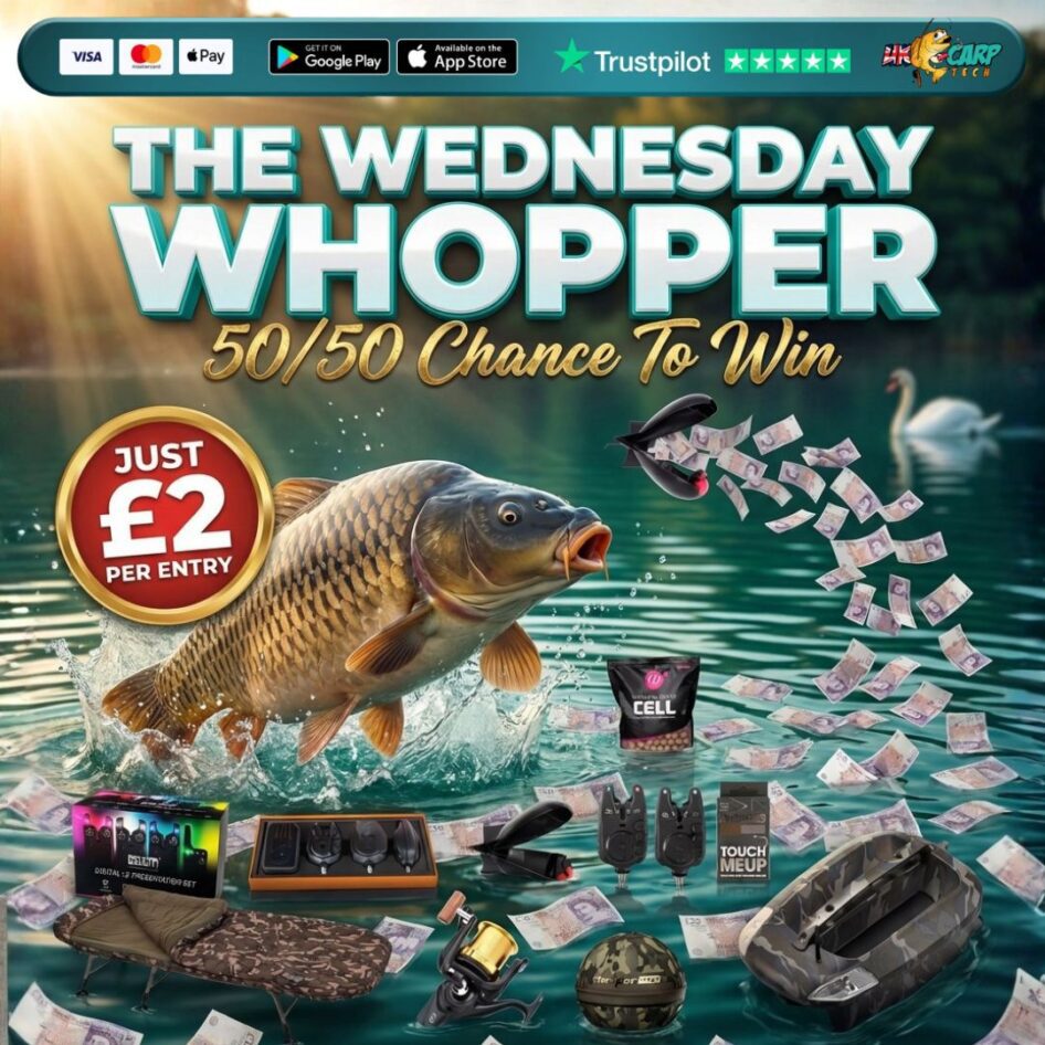 The live draw will take place on the UK Carp Tech Ltd. Facebook page using Google’s random number generator to select the winning ticket number from all Entrants.