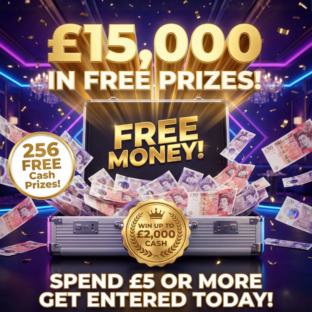 Add £5 Worth Of Tickets to your cart for any of our other competitions you will see a BONUS comp automatically added to your cart that bonus competition has 256 instant wins in it with a total of £15,000 in free cash, if the ticket number you get in the bonus comp matches one of the instant win numbers in the bonus comp the cash is yours!