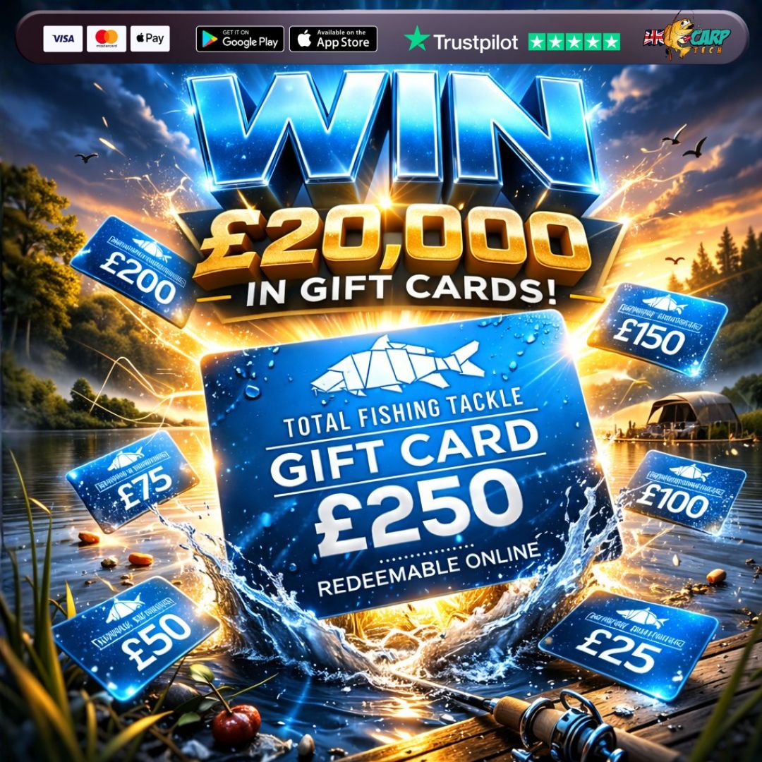 You may enter the competition online or for free by post by sending your entry to UK Carp Tech Ltd. on a postcard. You must have an account on UK Carp Tech Ltd. for your entry to be processed. All details on your entry MUST correspond to the details on your account to receive the order confirmation and ticket number. Postal entries received without a registered account cannot be processed.