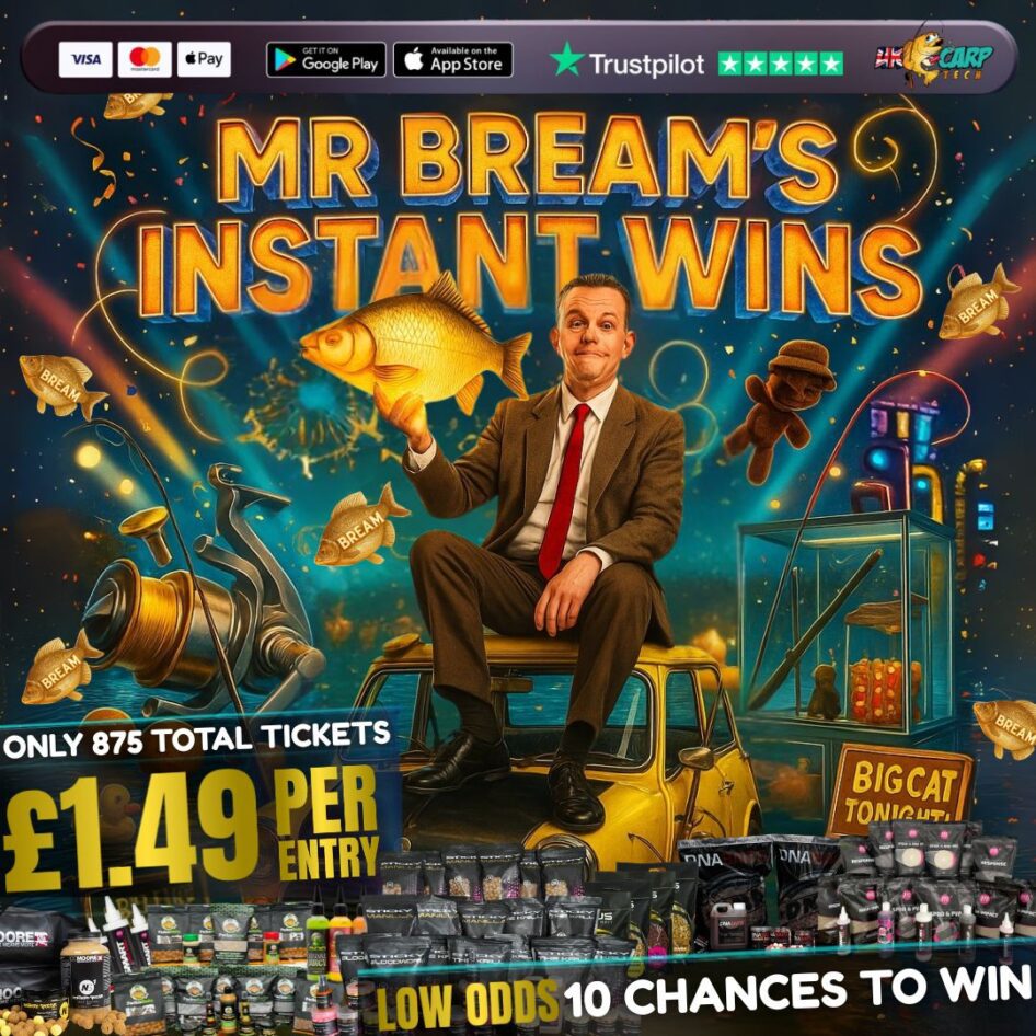 The live draw will take place on the UK Carp Tech Ltd. Facebook page using Google’s random number generator to select the winning ticket number from all Entrants.