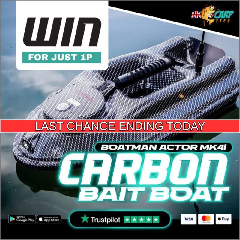 The live draw will take place on the UK Carp Tech Ltd. Facebook page using Google’s random number generator to select the winning ticket number from all Entrants.