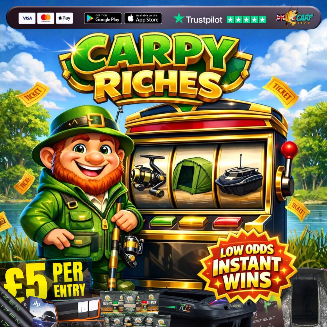 You may enter the competition online or for free by post by sending your entry to UK Carp Tech Ltd. on a postcard. You must have an account on UK Carp Tech Ltd. for your entry to be processed. All details on your entry MUST correspond to the details on your account to receive the order confirmation and ticket number. Postal entries received without a registered account cannot be processed.