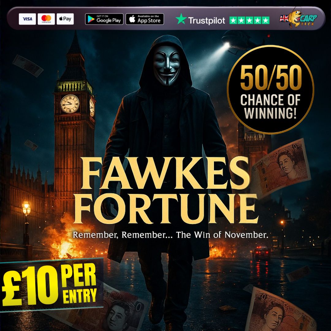 The live draw will take place on the UK Carp Tech Ltd. Facebook page using Google’s random number generator to select the winning ticket number from all Entrants.