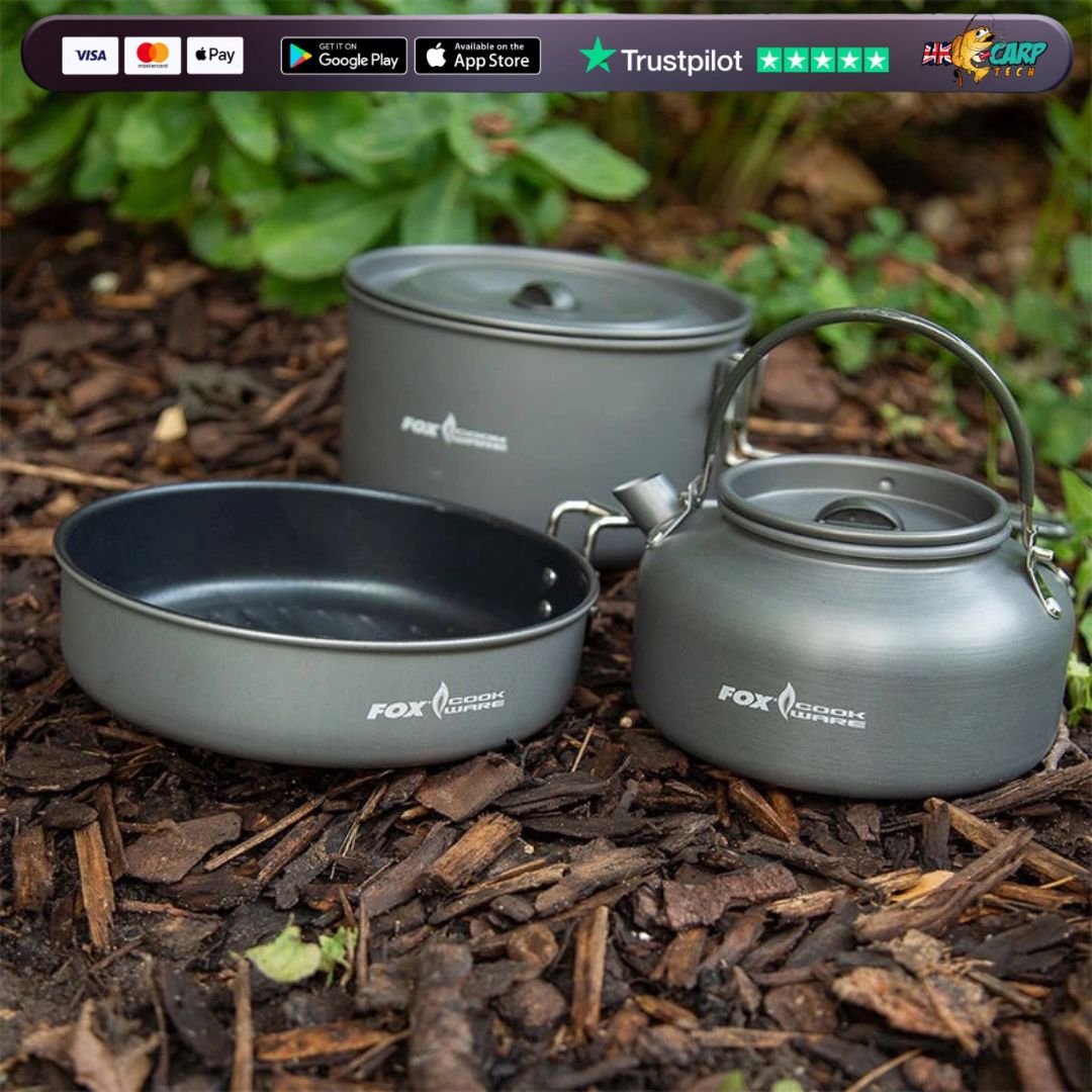 The Fox Cookware 3 Piece Cook Set gives you a frying pan, medium saucepan and a 0.9l Kettle. Packing together neatly with the saucepan sitting inside the frying pan and the kettle inside the saucepan. Featuring a thicker aluminium on the pans that spreads heat more evenly and allows for a high quality non-stick surface to be applied.