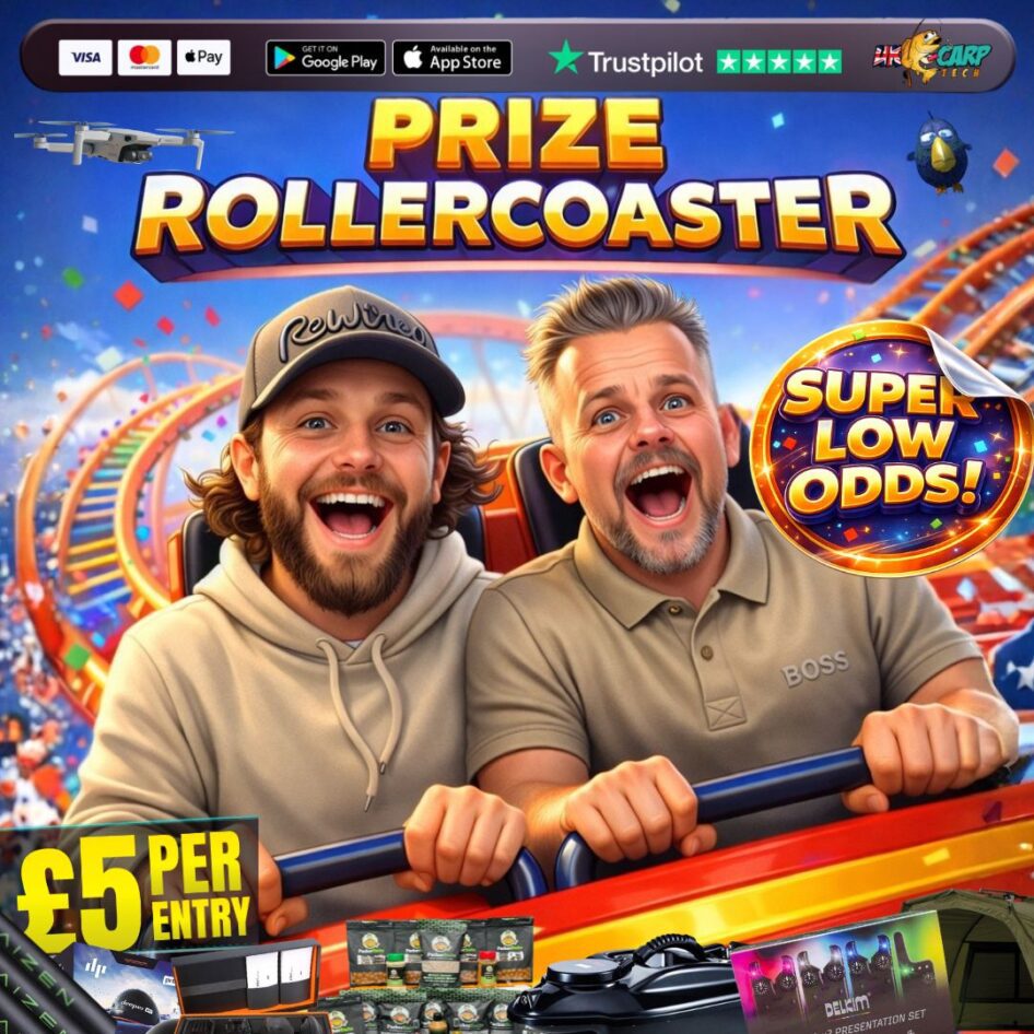 The live draw will take place on the UK Carp Tech Ltd. Facebook page using Google’s random number generator to select the winning ticket number from all Entrants.