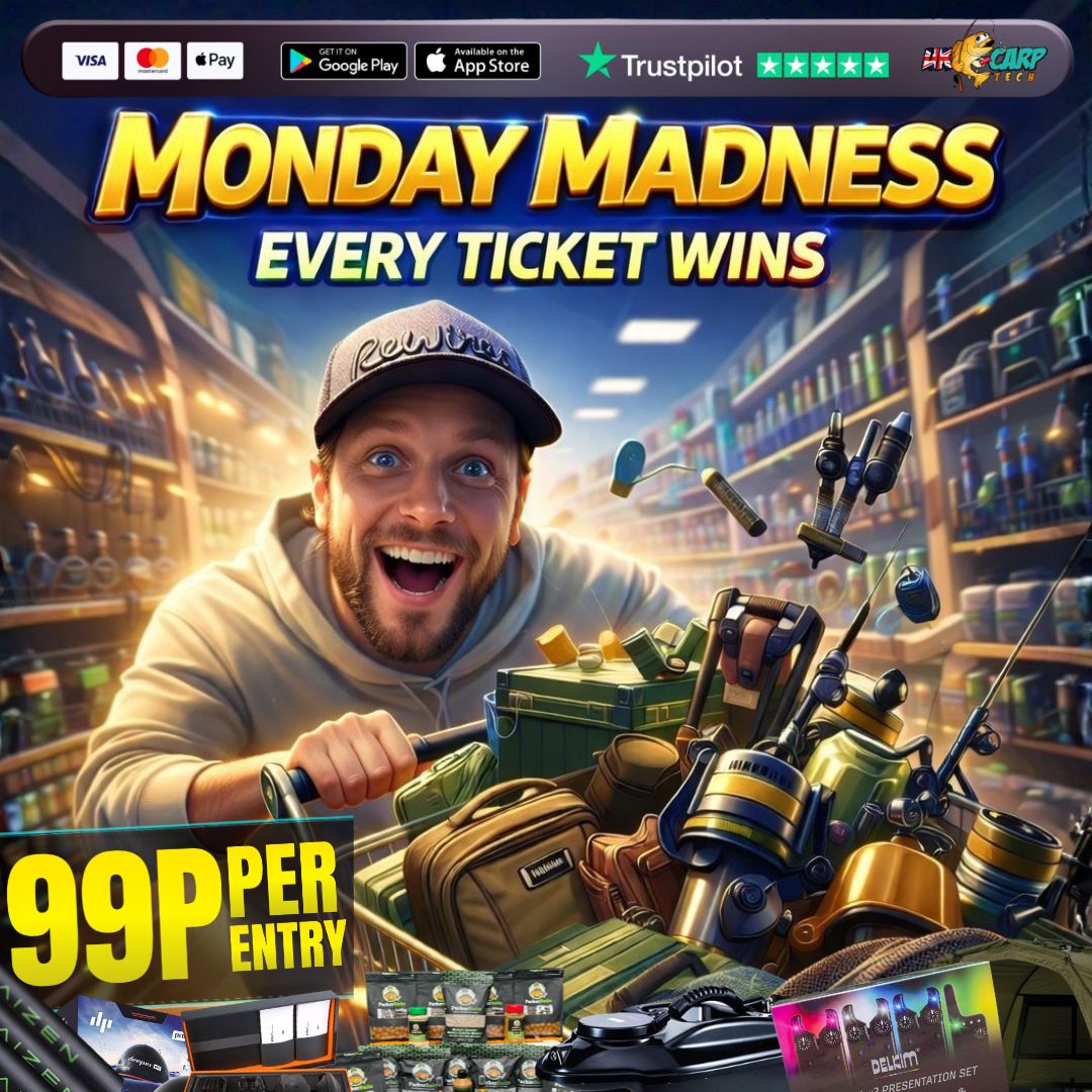The live draw will take place on the UK Carp Tech Ltd. Facebook page using Google’s random number generator to select the winning ticket number from all Entrants.