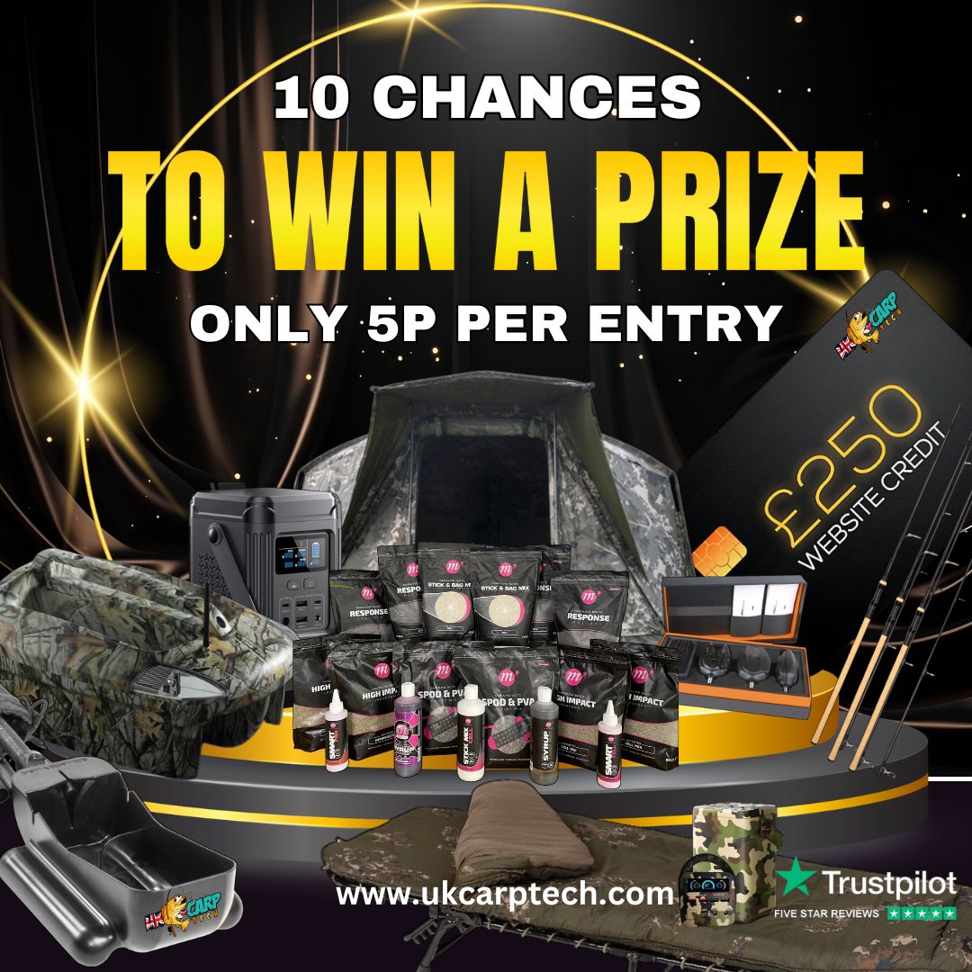 The live draw will take place on the UK Carp Tech Ltd. Facebook page using Google’s random number generator to select the winning ticket number from all Entrants.