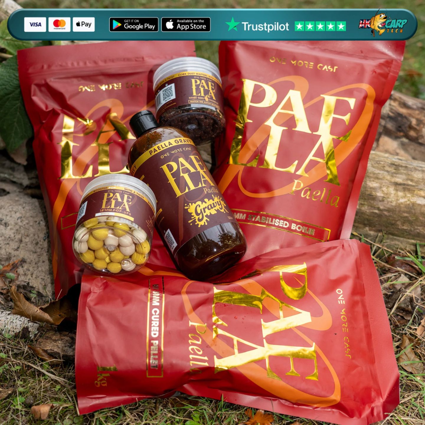 • Paella Gravy (500ml) – PVA-friendly and highly versatile: glaze boilies, elevating spod mixes, or adding a boost stick mixes for irresistible attraction.