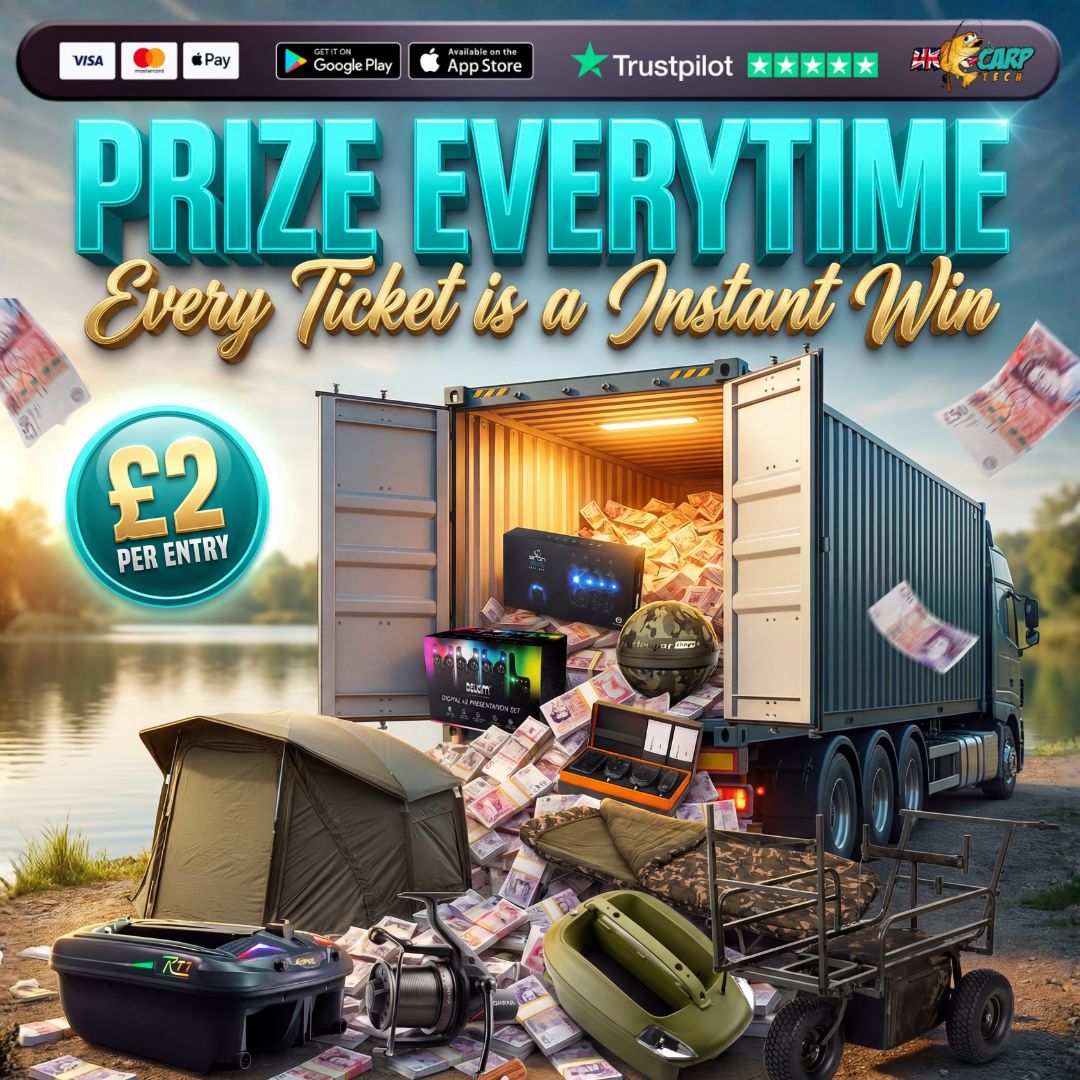 The live draw will take place on the UK Carp Tech Ltd. Facebook page using Google’s random number generator to select the winning ticket number from all Entrants.
