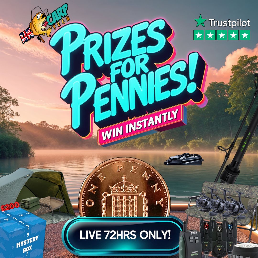 The live draw will take place on the UK Carp Tech Ltd. Facebook page using Google’s random number generator to select the winning ticket number from all Entrants.