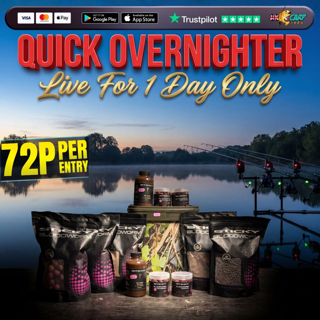 The live draw will take place on the UK Carp Tech Ltd. Facebook page using Google’s random number generator to select the winning ticket number from all Entrants.