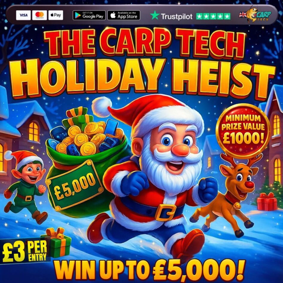 The live draw will take place on the UK Carp Tech Ltd. Facebook page using Google’s random number generator to select the winning ticket number from all Entrants.