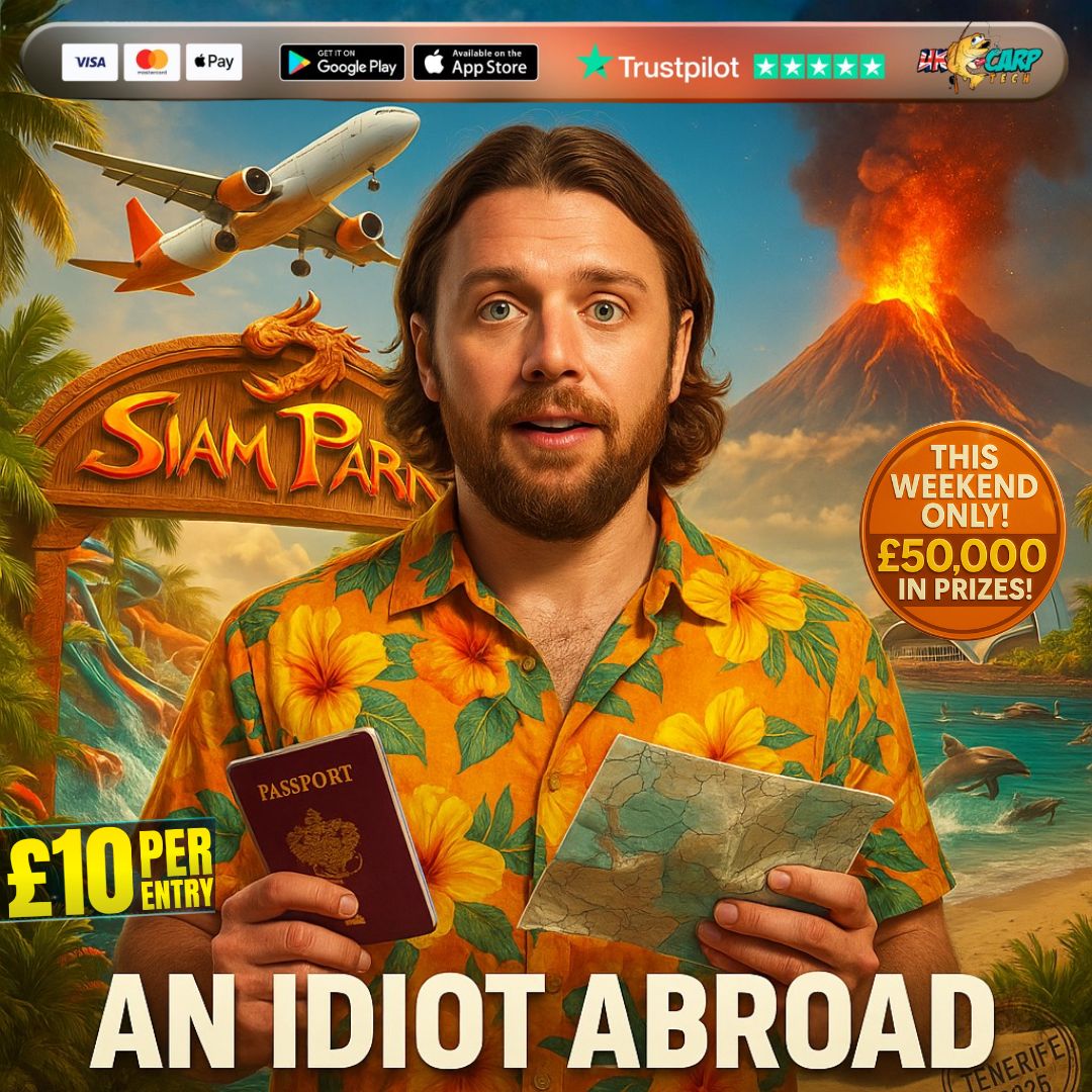 You may enter the competition online or for free by post by sending your entry to UK Carp Tech Ltd. on a postcard. You must have an account on UK Carp Tech Ltd. for your entry to be processed. All details on your entry MUST correspond to the details on your account to receive the order confirmation and ticket number. Postal entries received without a registered account cannot be processed.