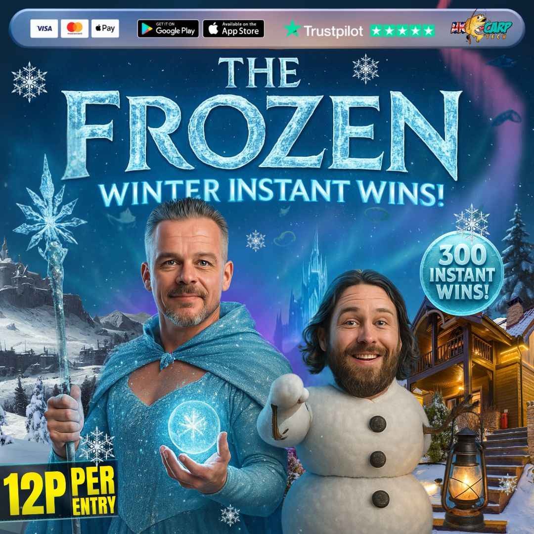 You may enter the competition online or for free by post by sending your entry to UK Carp Tech Ltd. on a postcard. You must have an account on UK Carp Tech Ltd. for your entry to be processed. All details on your entry MUST correspond to the details on your account to receive the order confirmation and ticket number. Postal entries received without a registered account cannot be processed.