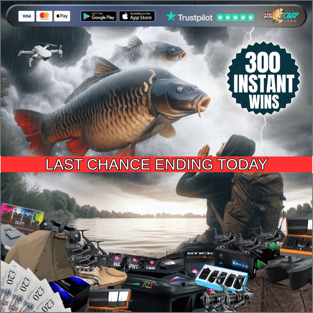 The live draw will take place on the UK Carp Tech Ltd. Facebook page using Google’s random number generator to select the winning ticket number from all Entrants.