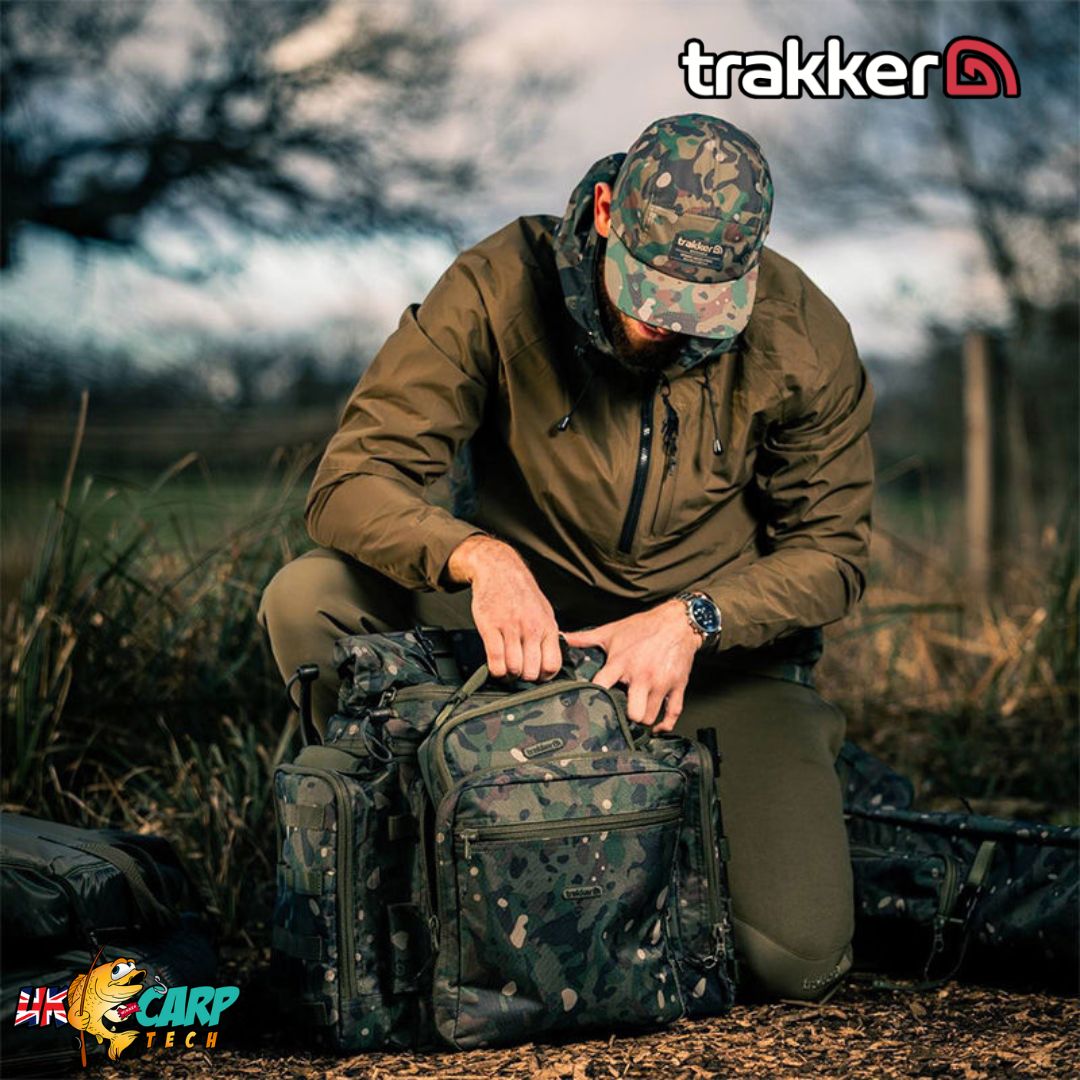 Trakker NXC Camo Scout Rucksacks, compact tackle transport solutions that allow you to carry a surprising amount of gear. With a large zipped central compartment, plus 4 additional external pockets. The side pockets both feature elasticated webbing loops for bankware, while the top compartment contains a removable EVA rig tray with in-built magnetic corner designed to keep rig components secure. With the front compartment sized to accept Trakker tackleboxes. Designed very much as a practical rucksack, with adjustable well-padded Neoprene shoulder straps, tension buckles and a heavily padded Neoprene lumbar support system. With the Adjustable top pocket straps sized to take the Trakker RLX Scout Chair.