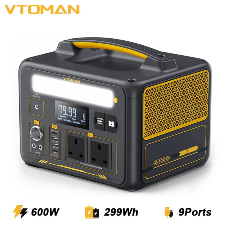 Power 9 Devices Simultaneously: Equipped with2*230V/600W AC Outlets, 2*12V/10A DC5521 Outputs, 1*12V/10A Car Port, 3*USB-A Outputs, and 1*TYPE-C PD60W Output, VTOMAN Jump 600X can power nine devices simultaneously.